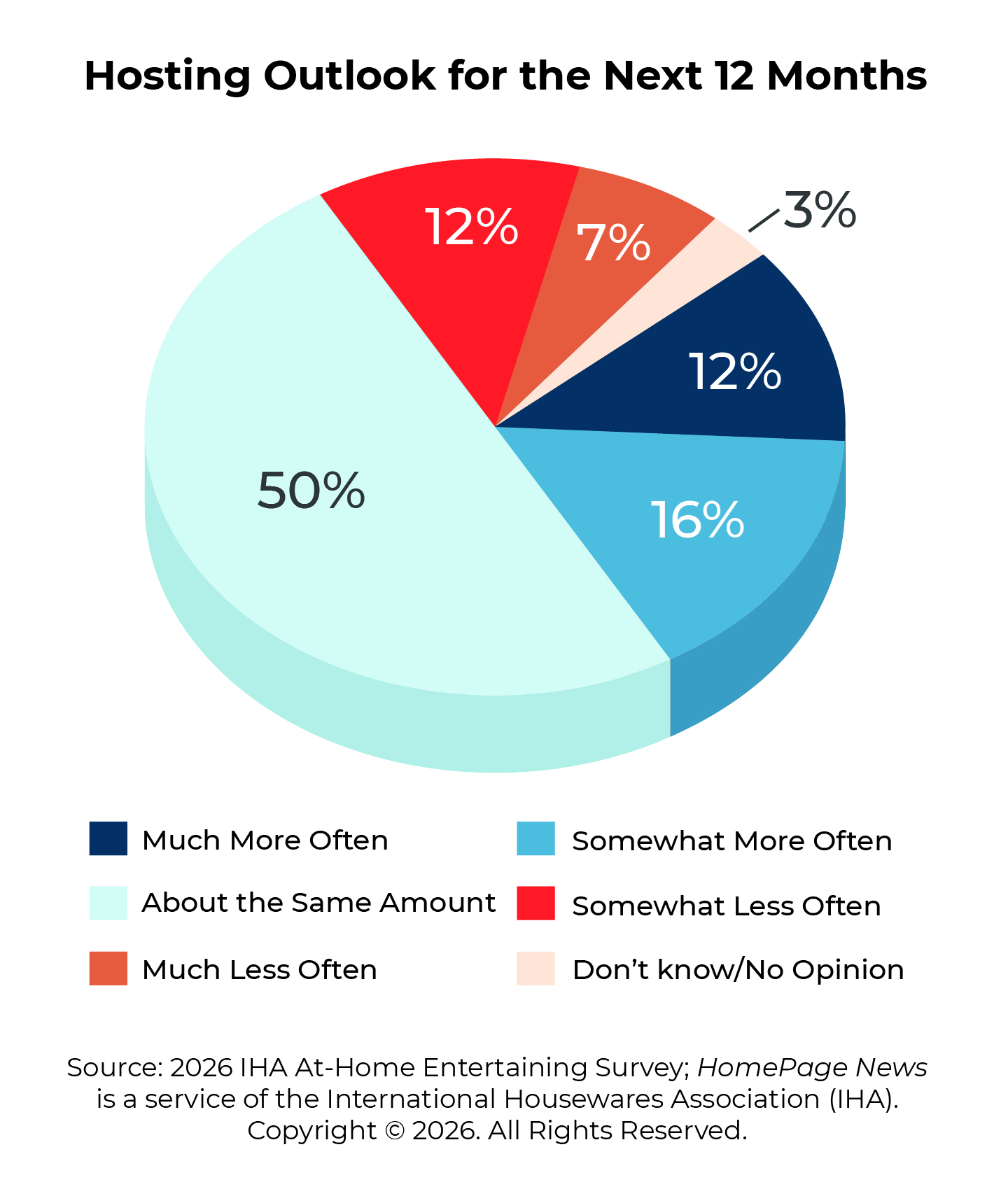 ROSEMONT, IL, February 23, 2026 – Home and housewares products will play an increasingly important role in consumers’ lives in 2026, according to the 2026 International Housewares Association (IHA) At-Home Entertaining Survey. The results, posted on the IHA’s independent news and information platform, HomePageNews.com, demonstrate how hosting at-home gatherings – whether to celebrate life moments or for no reason at all – continues to gain momentum, especially among younger generations. The continued uptick in at-home entertaining will be on full display at The Inspired Home Show,® March 10-12 at Chicago’s McCormick Place. From small appliances to cookware, kitchen tools to serveware, products designed for entertaining at home will be just one of the categories attracting attention at the largest global home and housewares marketplace in the Western Hemisphere. IHA’s survey shows that bringing people together in familiar spaces continues to grow in appeal, even after recent year-over-year increases. Twenty-eight percent of respondents anticipate hosting more at-home gatherings in 2026, a four point jump compared to 24% last year. Fifty percent said they plan to host the same amount, while 19% thought it would be less.